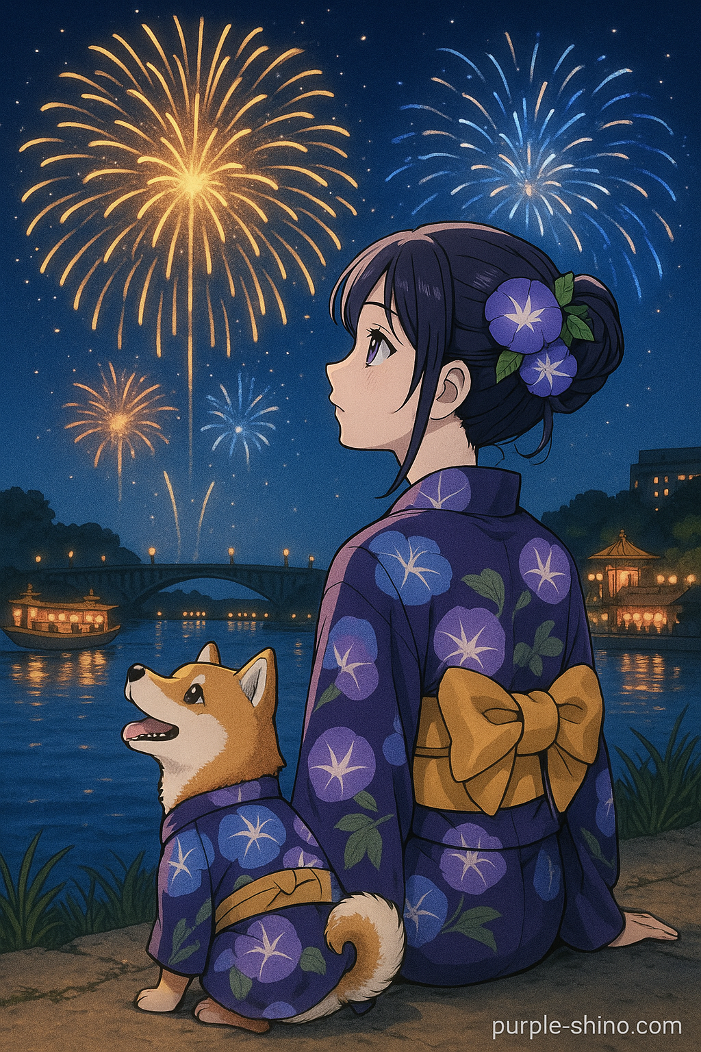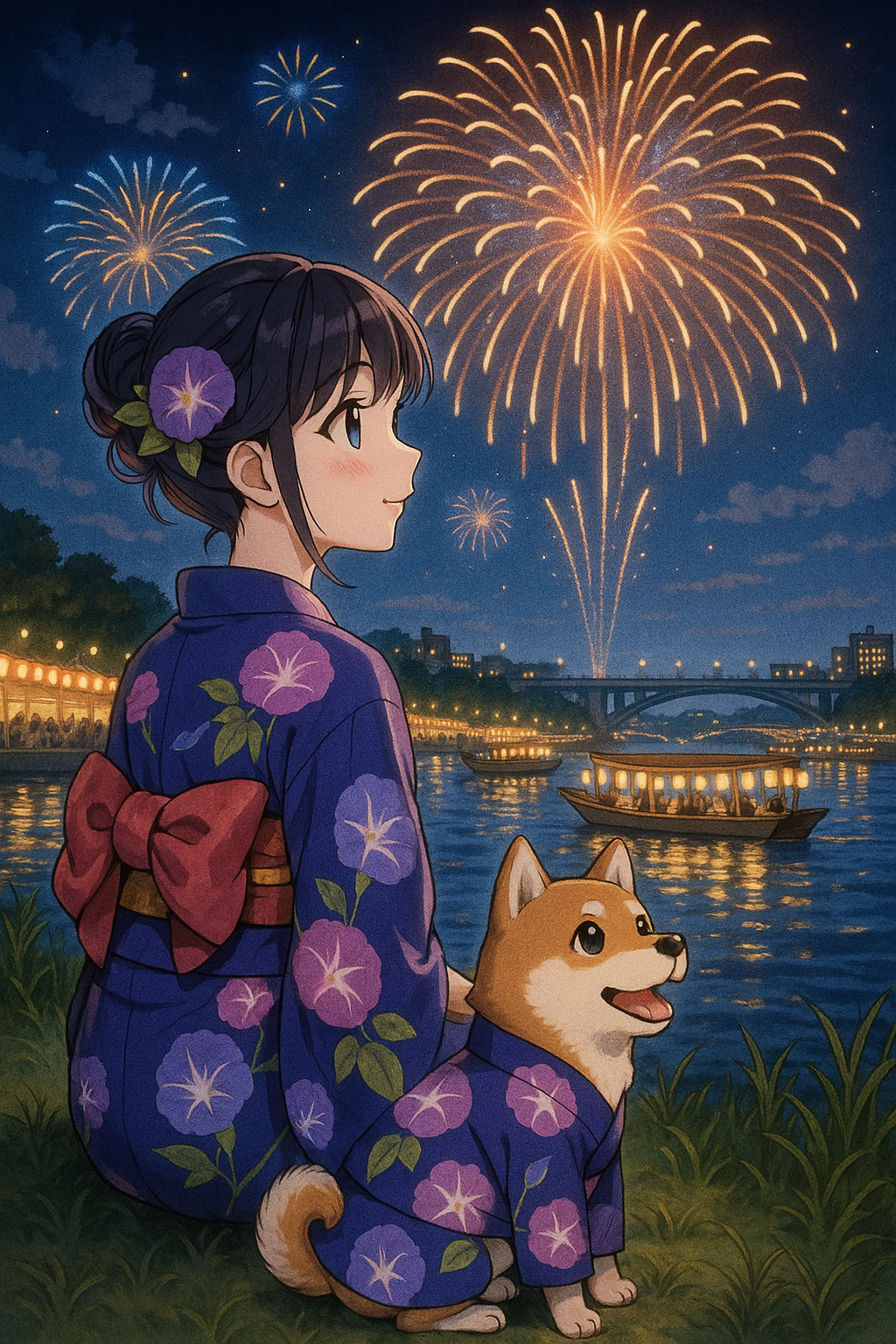 花火が大きく開くたび、小豆の目も「キラキラ」って輝いてて。