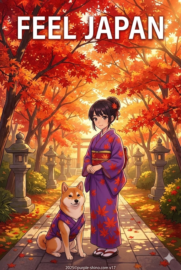 On this special afternoon, Azuki and I visited a shrine grounds covered in fallen autumn leaves. We sat on a red bench covered with a himosen (red felt cloth), which felt like a special seat reserved just for autumn. Dressed in our matching maple-patterned kimonos, I opened a picture book.